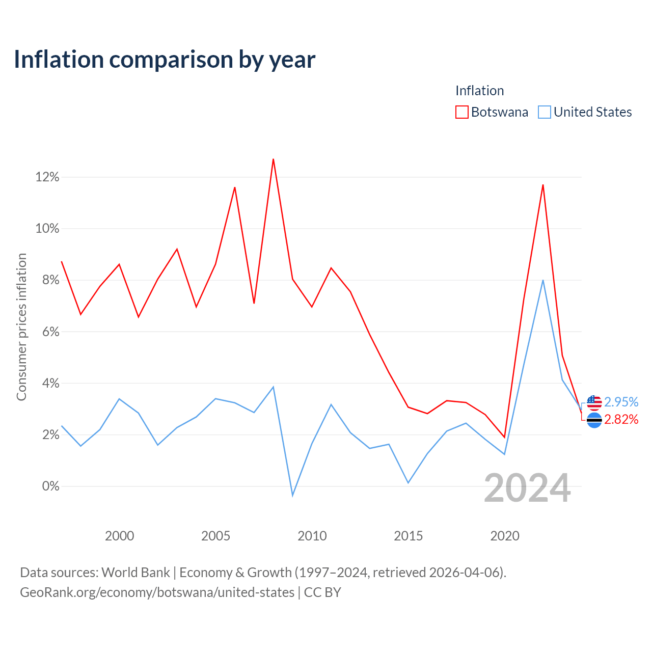 Data sources: World Bank | Economy & Growth (1960–2024, retrieved 2026-04-06).