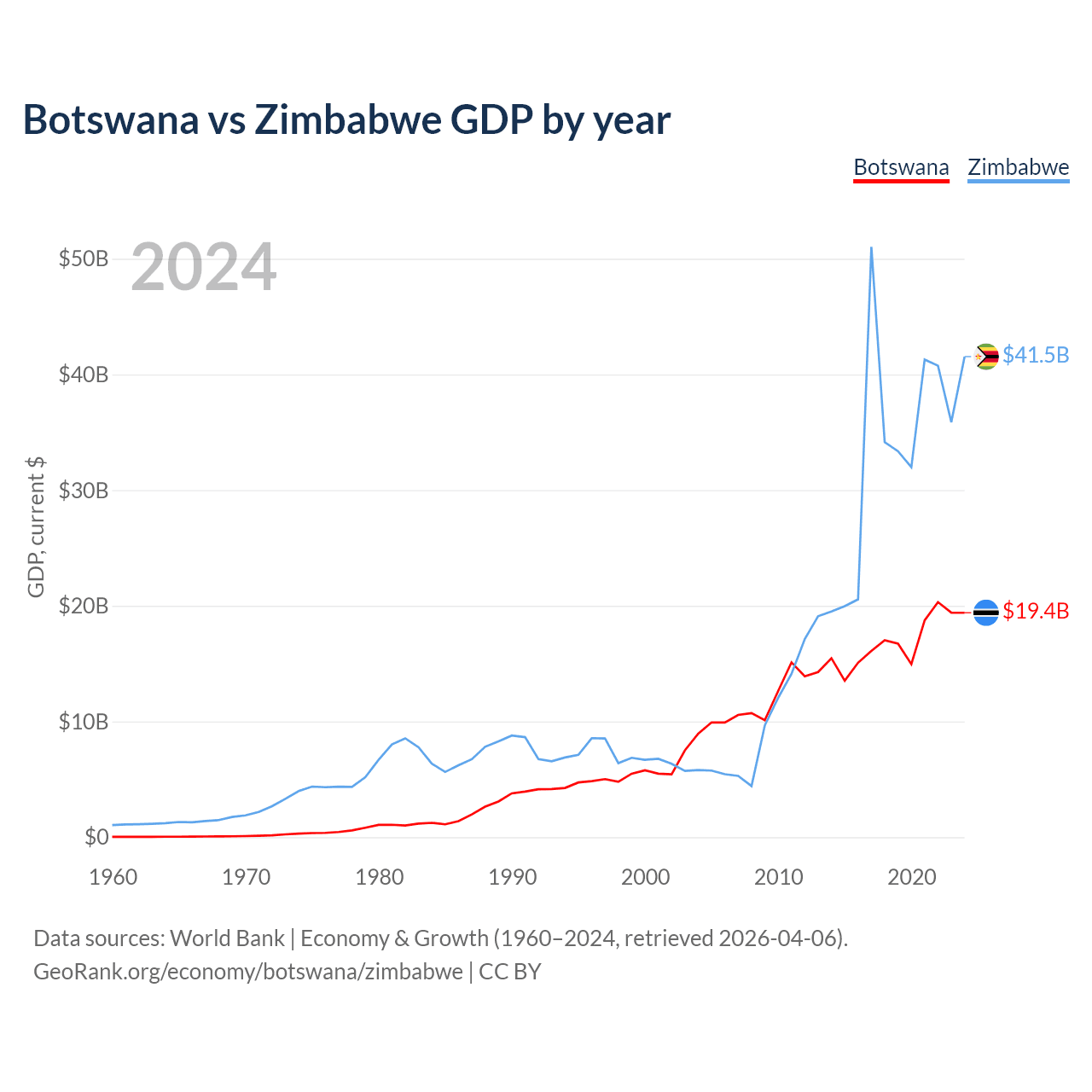 Botswana vs Zimbabwe GDP by year