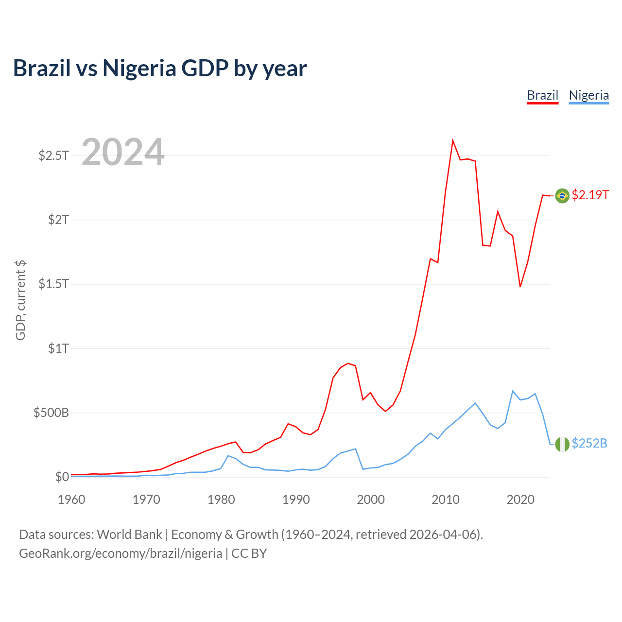 Brazil vs Nigeria GDP by year