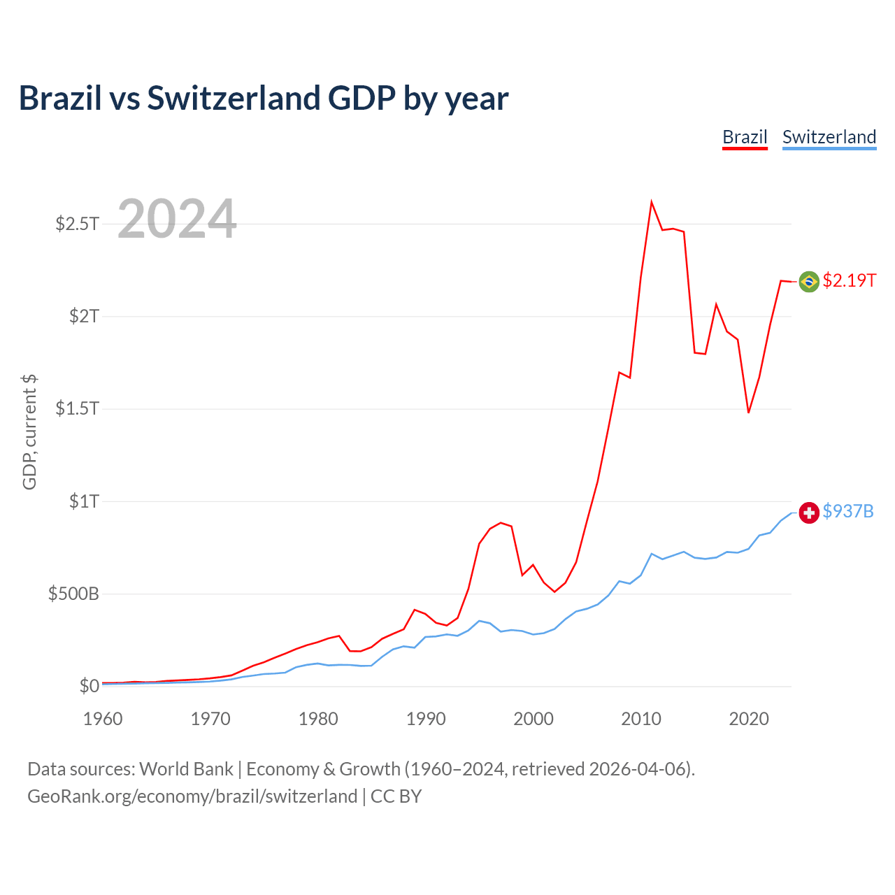 Brazil vs Switzerland GDP by year