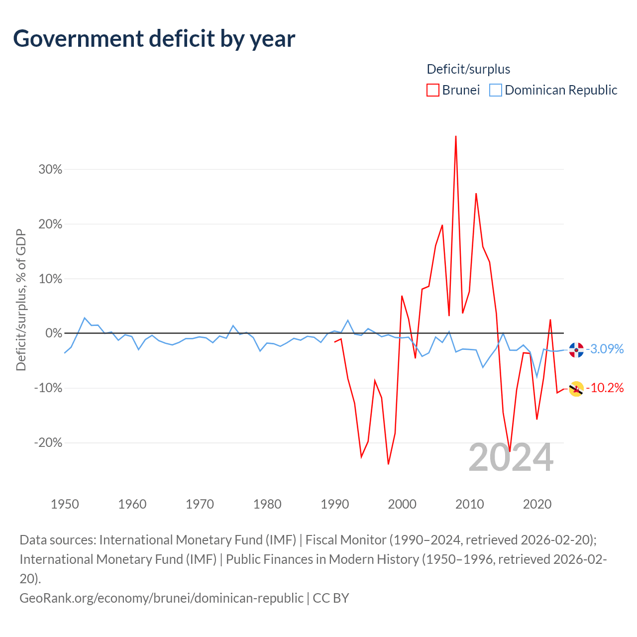 - International Monetary Fund (IMF) | Public Finances in Modern History (1950–1996, retrieved 2026-02-20)