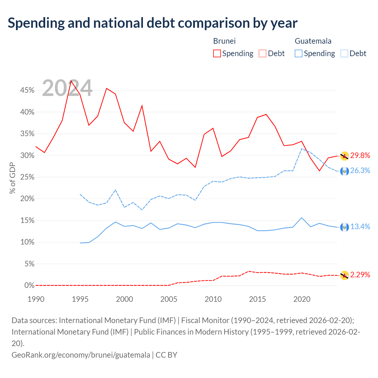 - International Monetary Fund (IMF) | Fiscal Monitor (1990–2024, retrieved 2026-02-20)