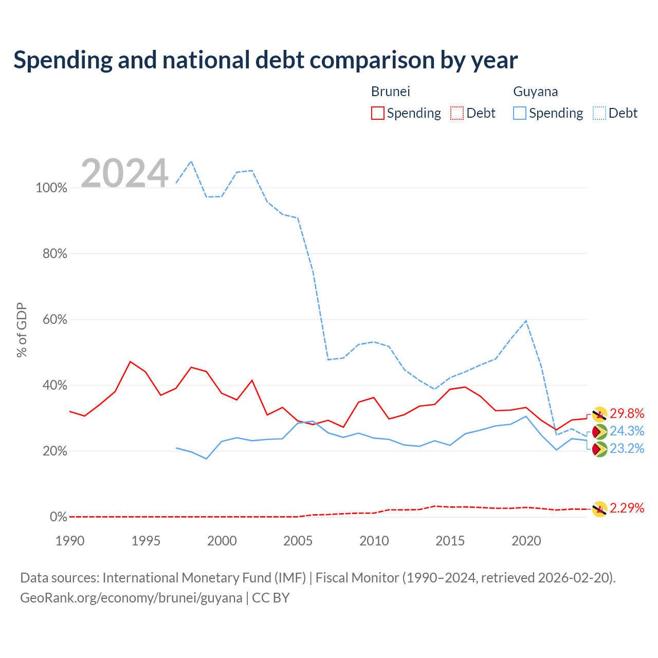 - International Monetary Fund (IMF) | Fiscal Monitor (1990–2024, retrieved 2026-02-20)