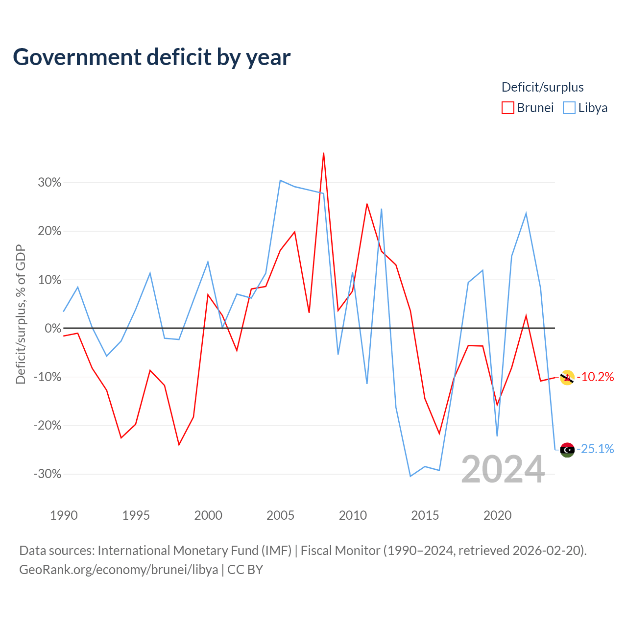 - International Monetary Fund (IMF) | Fiscal Monitor (1990–2024, retrieved 2026-02-20)