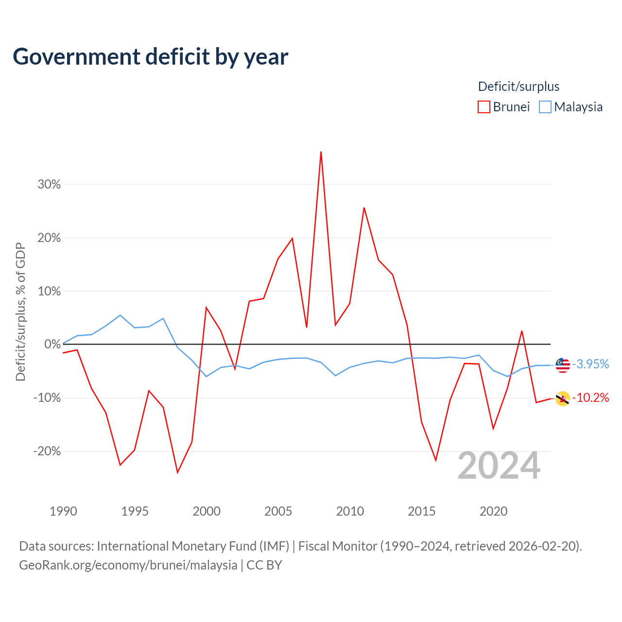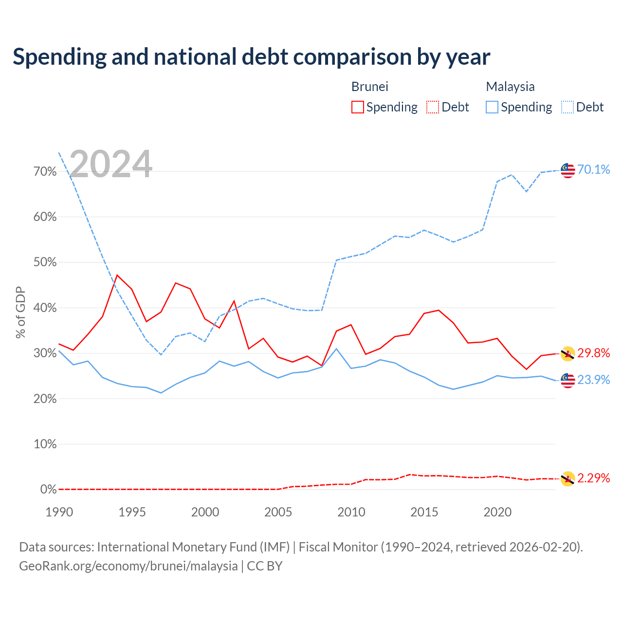 - International Monetary Fund (IMF) | Fiscal Monitor (1990–2024, retrieved 2026-02-20)