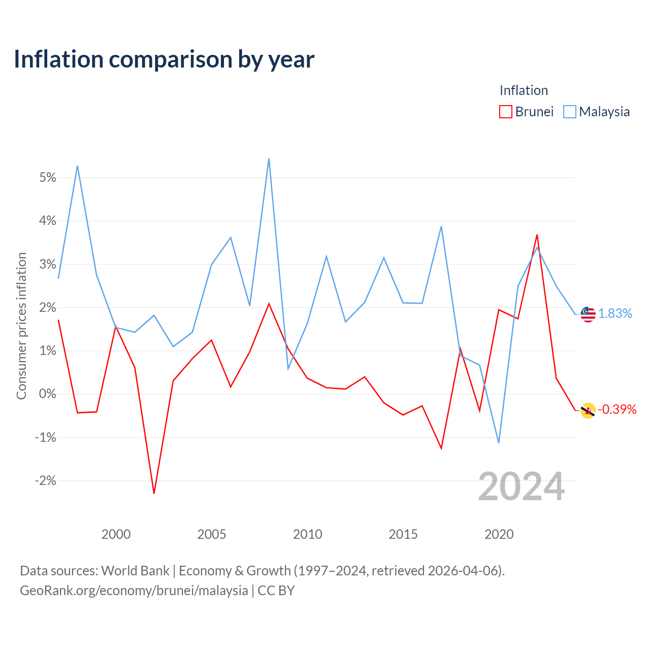 Data sources: World Bank | Economy & Growth (1960–2024, retrieved 2026-04-06).