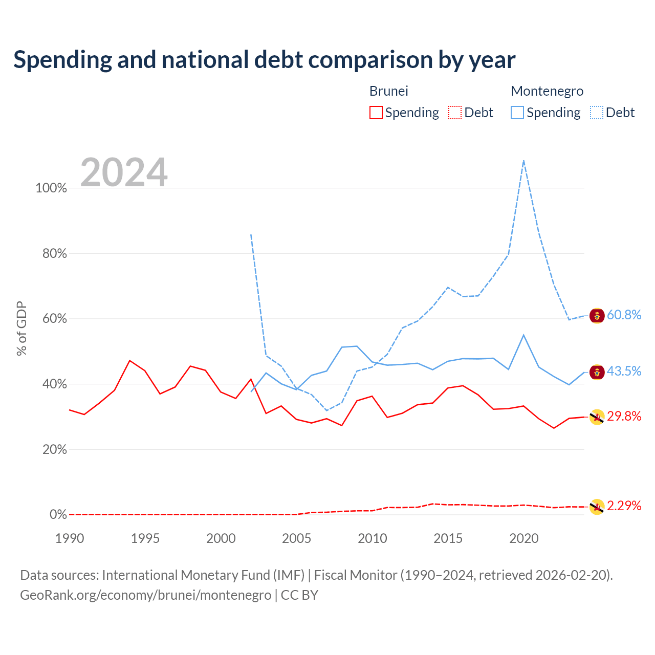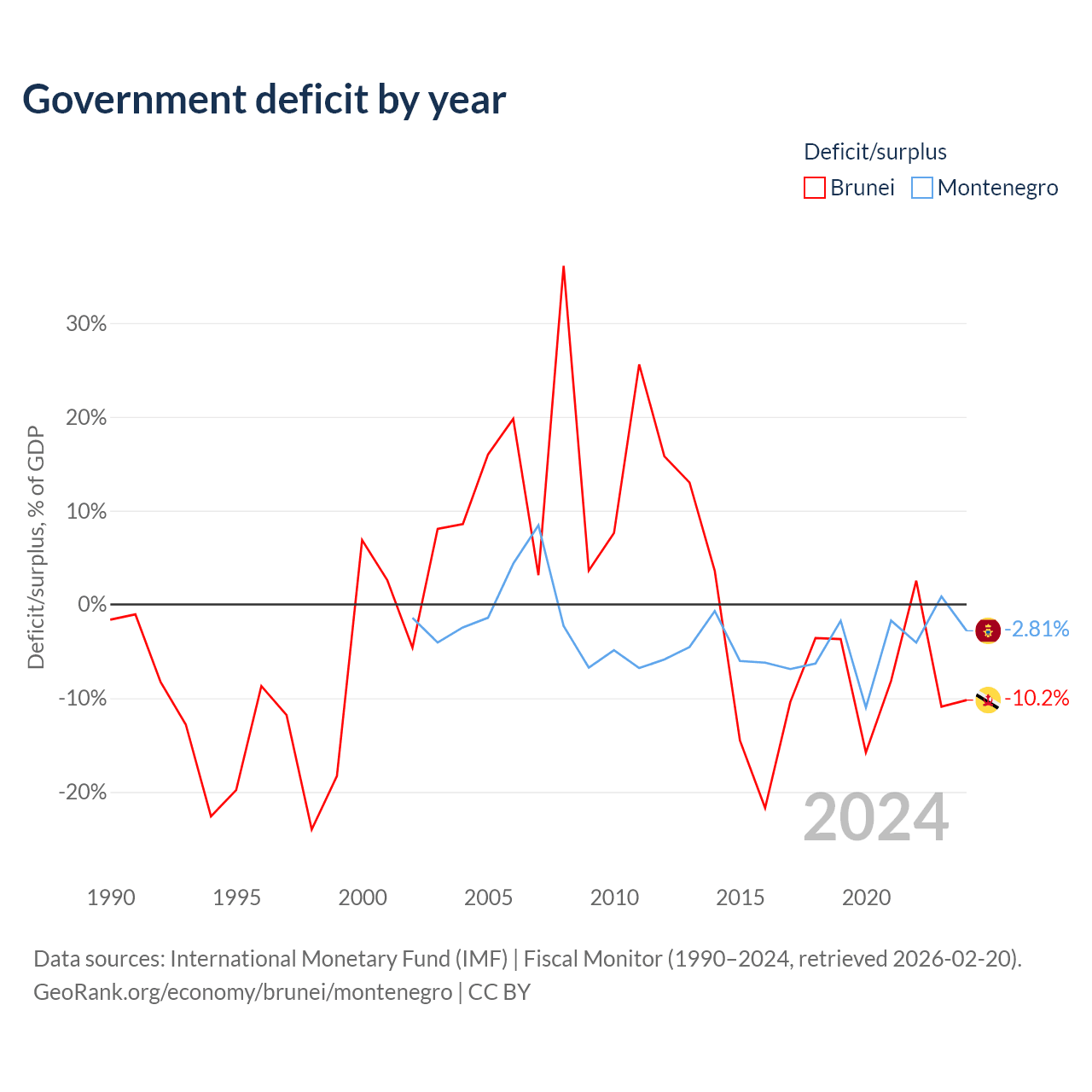 - International Monetary Fund (IMF) | Fiscal Monitor (1990–2024, retrieved 2026-02-20)