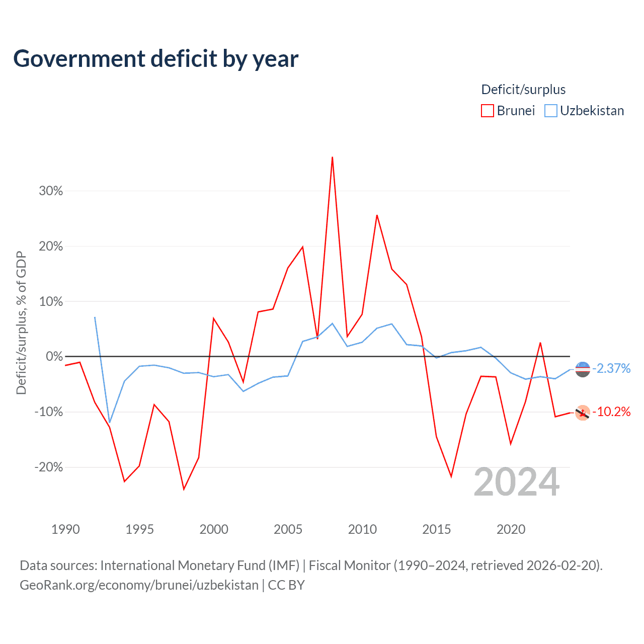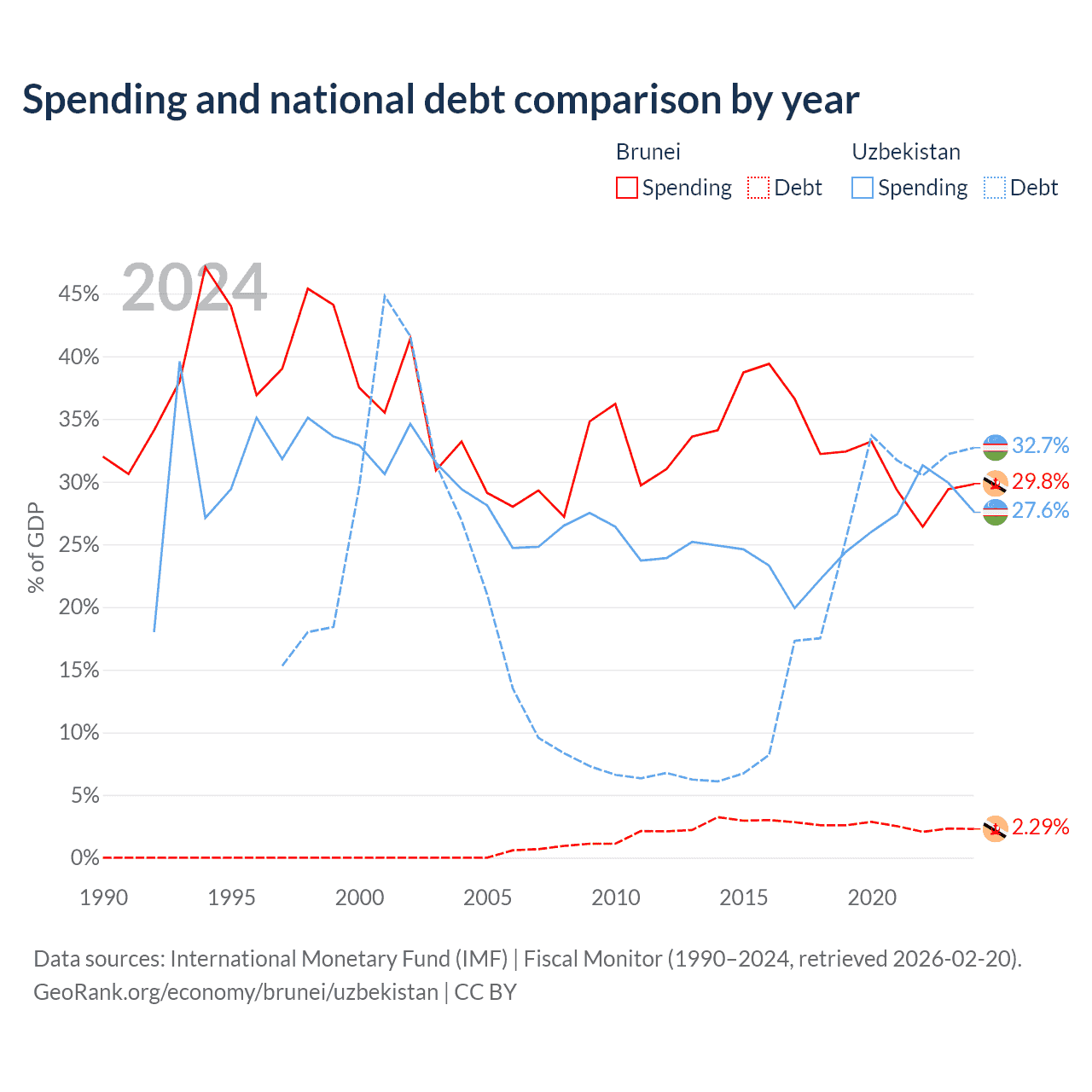 - International Monetary Fund (IMF) | Fiscal Monitor (1990–2024, retrieved 2026-02-20)