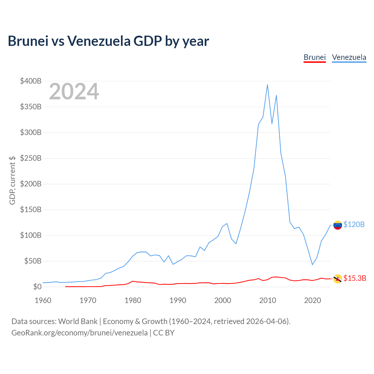 Brunei vs Venezuela GDP by year
