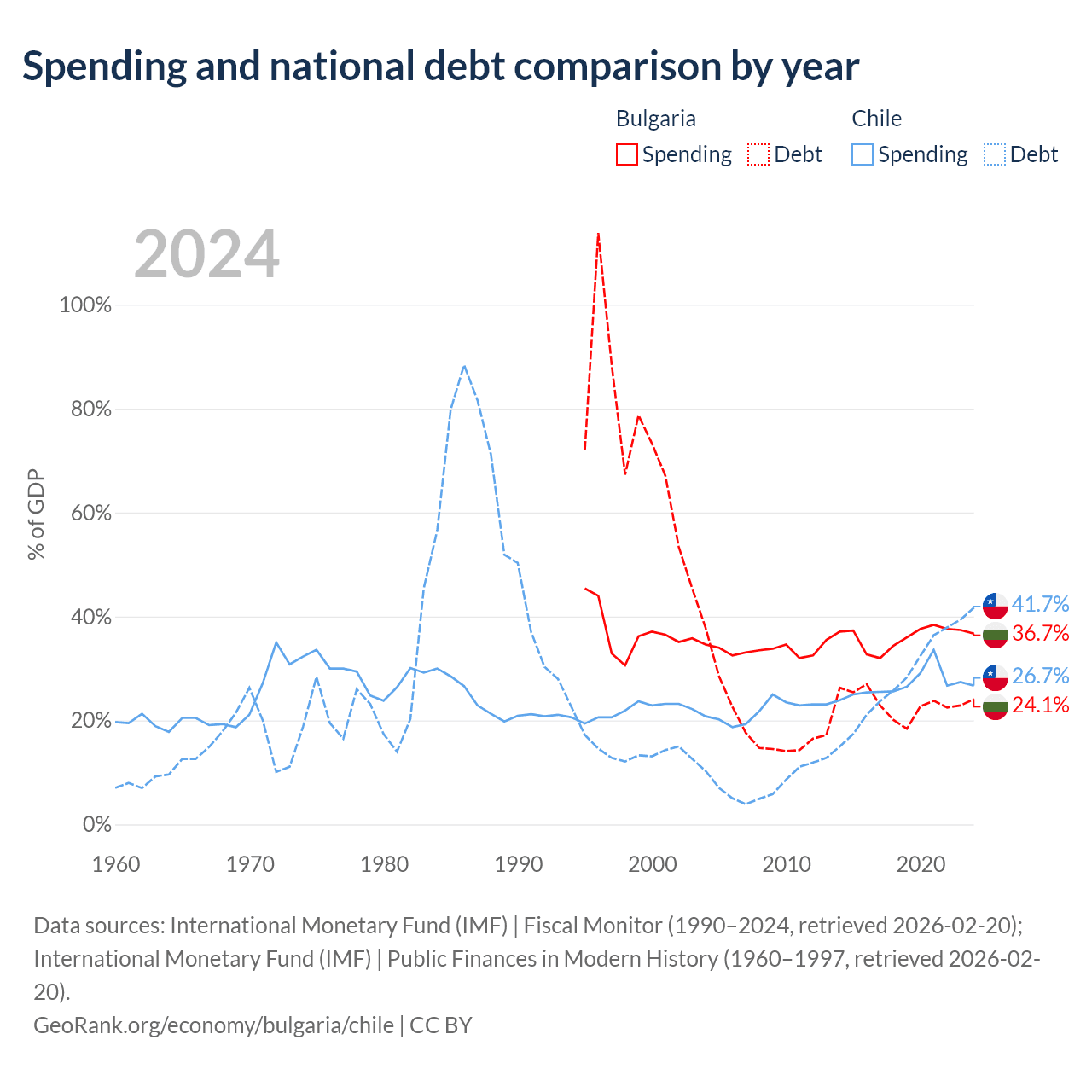 Bulgaria has $27.3B in government debt (24.1% of GDP), compared to $138B (41.7% of GDP) in Chile.