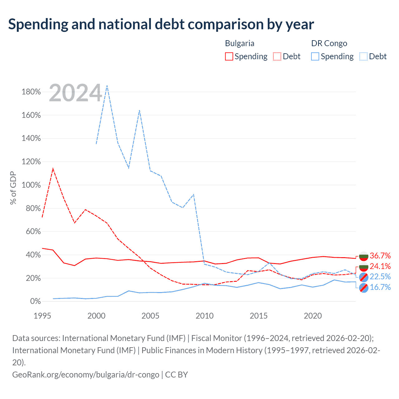 Bulgaria has $27.3B in government debt (24.1% of GDP), compared to $16B (22.5% of GDP) in the DR Congo.