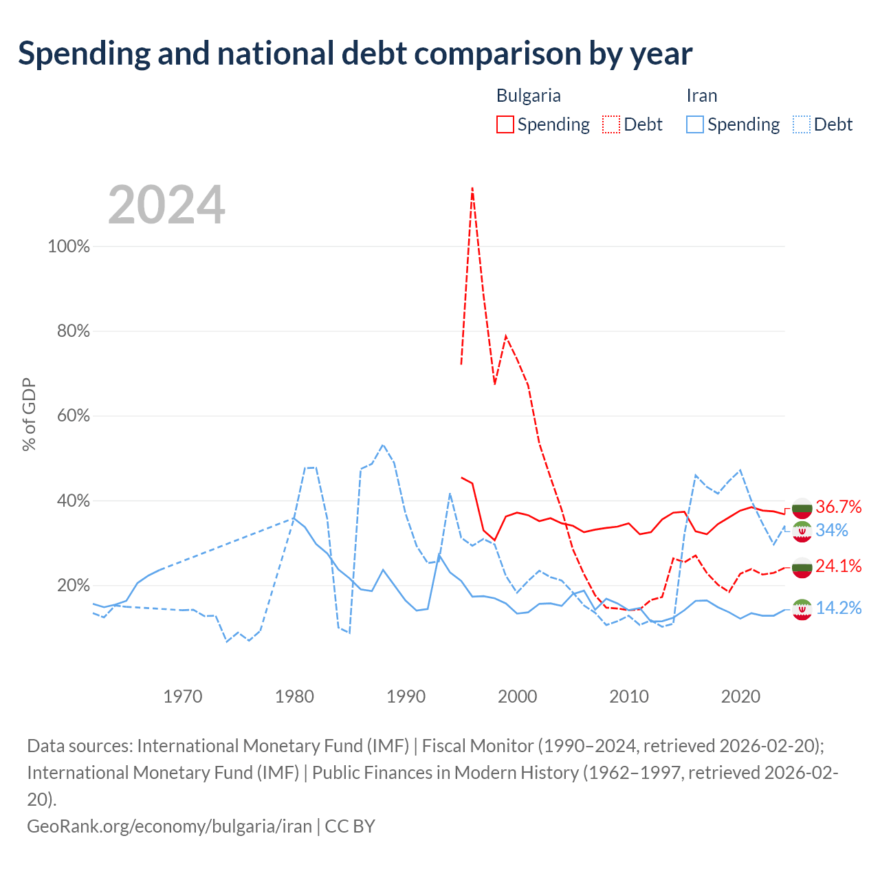 Bulgaria has $27.3B in government debt (24.1% of GDP), compared to $162B (34% of GDP) in Iran.