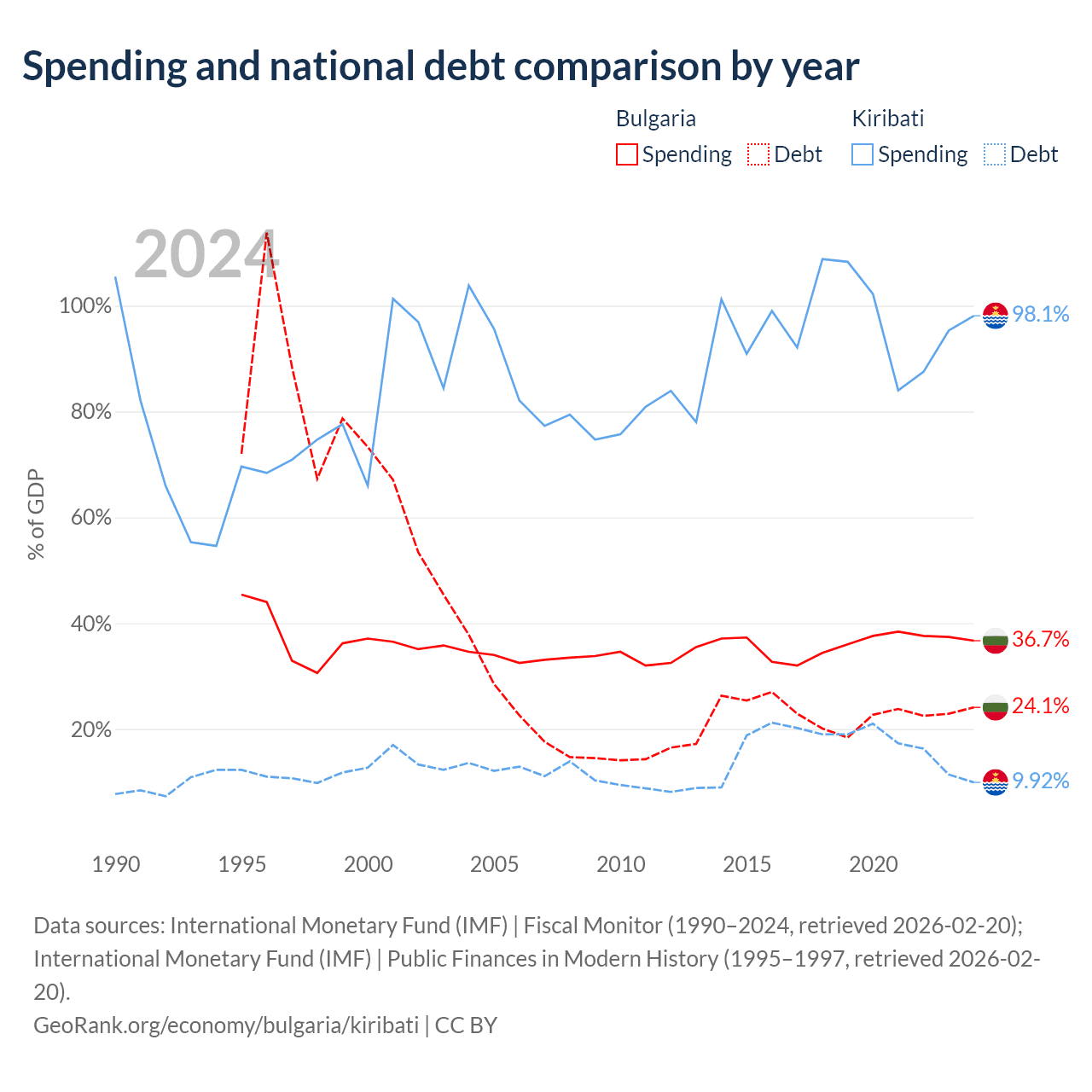 - International Monetary Fund (IMF) | Fiscal Monitor (1990–2024, retrieved 2026-02-20)
