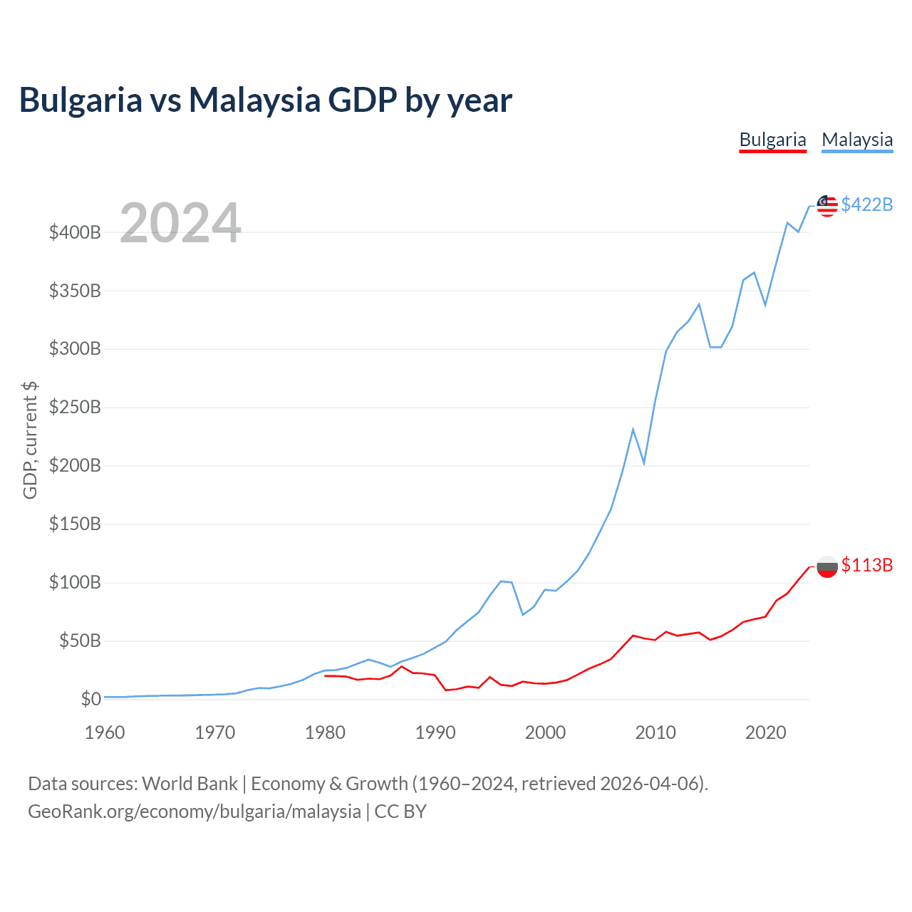 Bulgaria vs Malaysia GDP by year