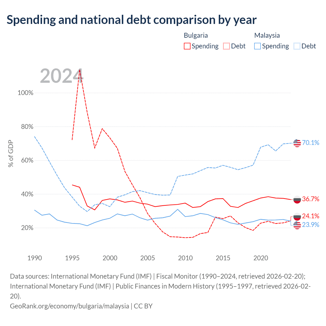 - International Monetary Fund (IMF) | Fiscal Monitor (1990–2024, retrieved 2026-02-20)