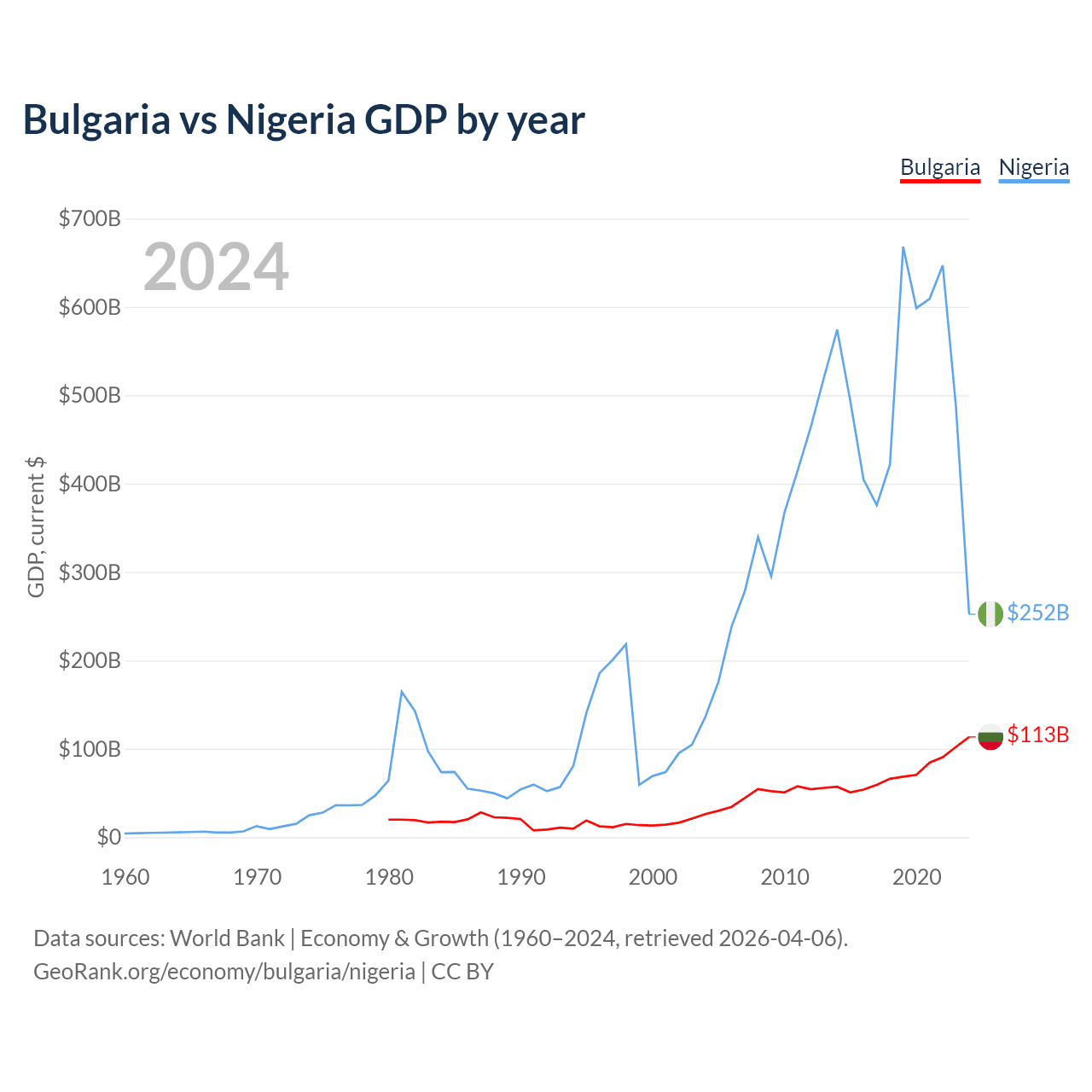 Bulgaria vs Nigeria GDP by year