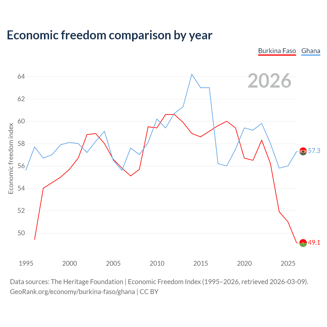 Data sources: The Heritage Foundation | Economic Freedom Index (1995–2026, retrieved 2026-03-09).