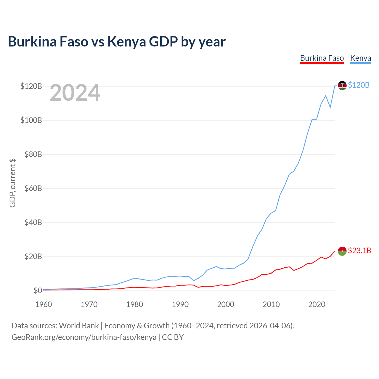 Burkina Faso vs Kenya GDP by year