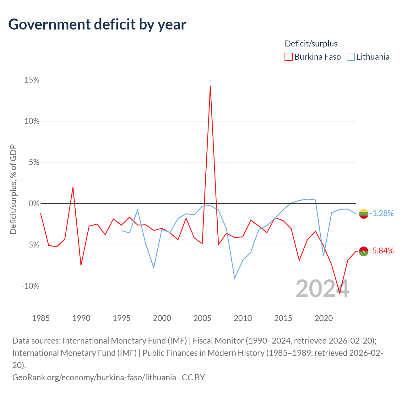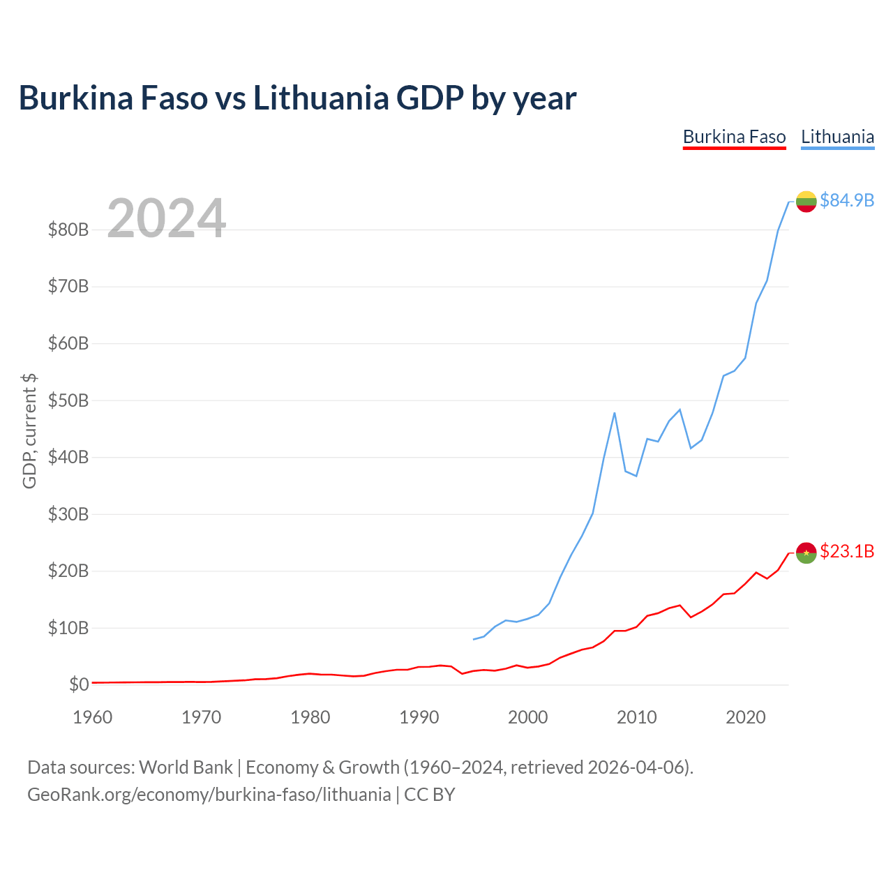 Burkina Faso vs Lithuania GDP by year