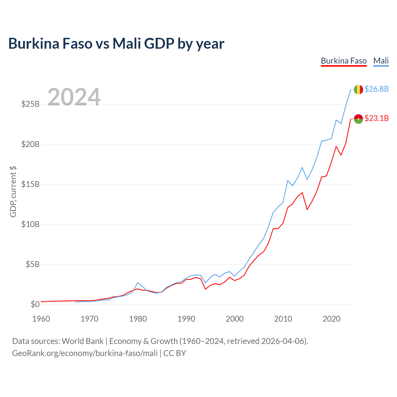 Burkina Faso vs Mali GDP by year