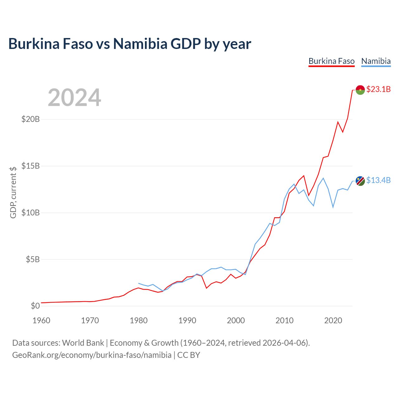 Burkina Faso vs Namibia GDP by year