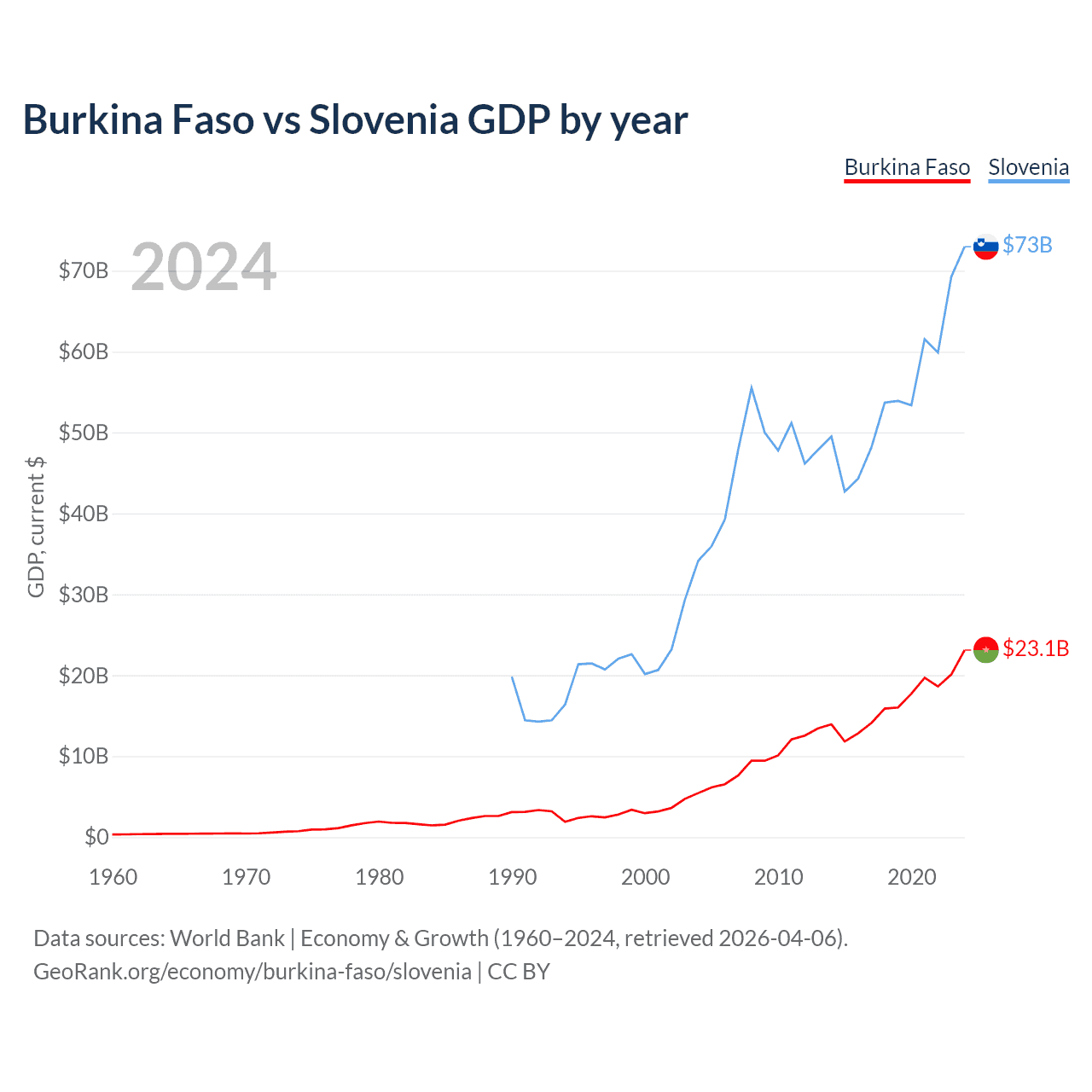 Burkina Faso vs Slovenia GDP by year