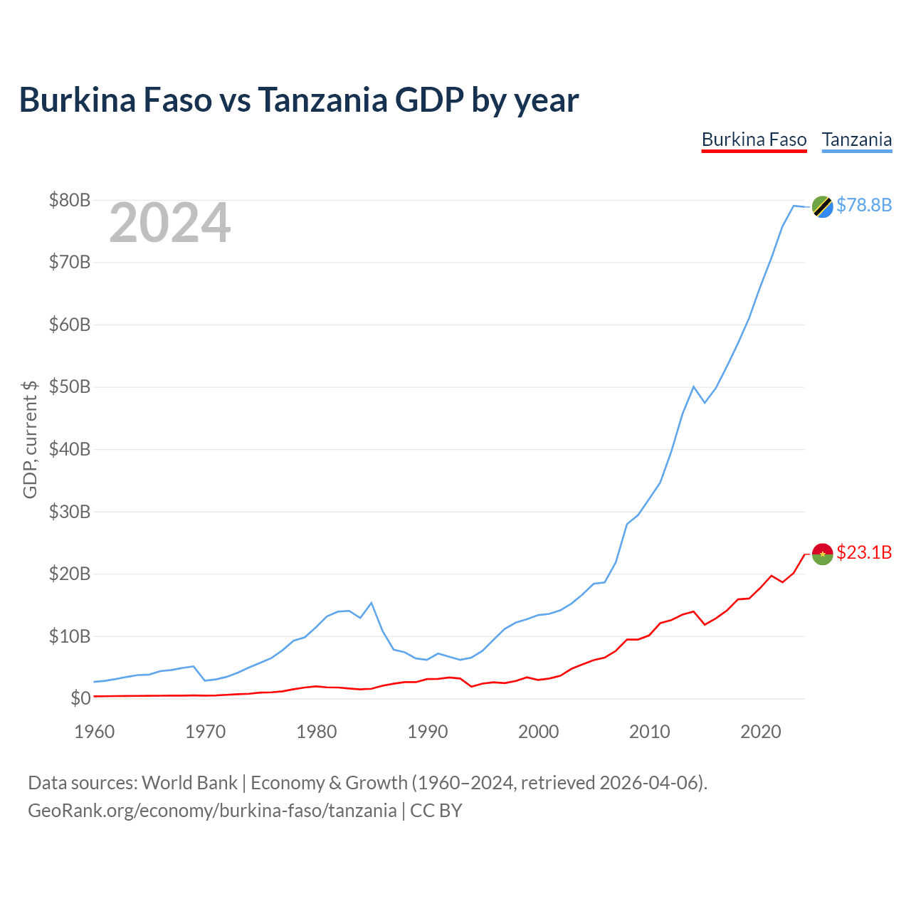Burkina Faso vs Tanzania GDP by year