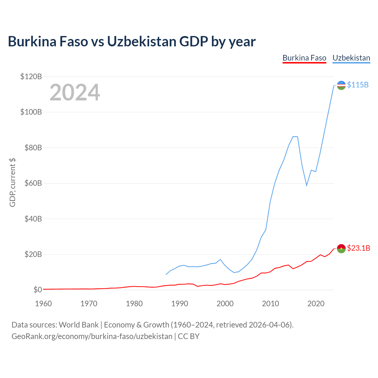 Burkina Faso vs Uzbekistan GDP by year