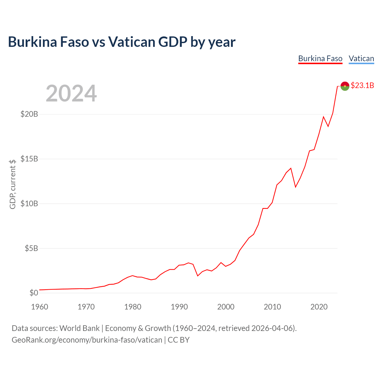Burkina Faso vs Vatican GDP by year