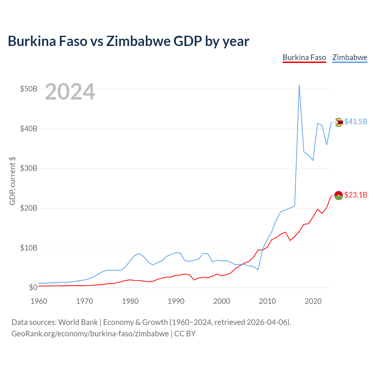 Burkina Faso vs Zimbabwe GDP by year