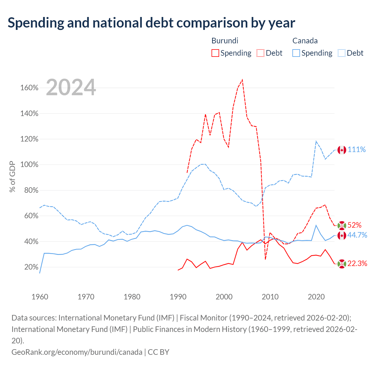 Burundi has $1.6B in government debt (52% of GDP), compared to $2.5T (111.3% of GDP) in Canada.