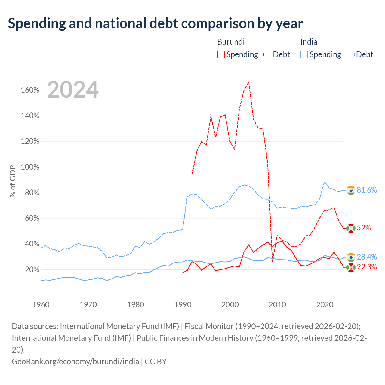 Burundi has $1.6B in government debt (52% of GDP), compared to $3.19T (81.6% of GDP) in India.