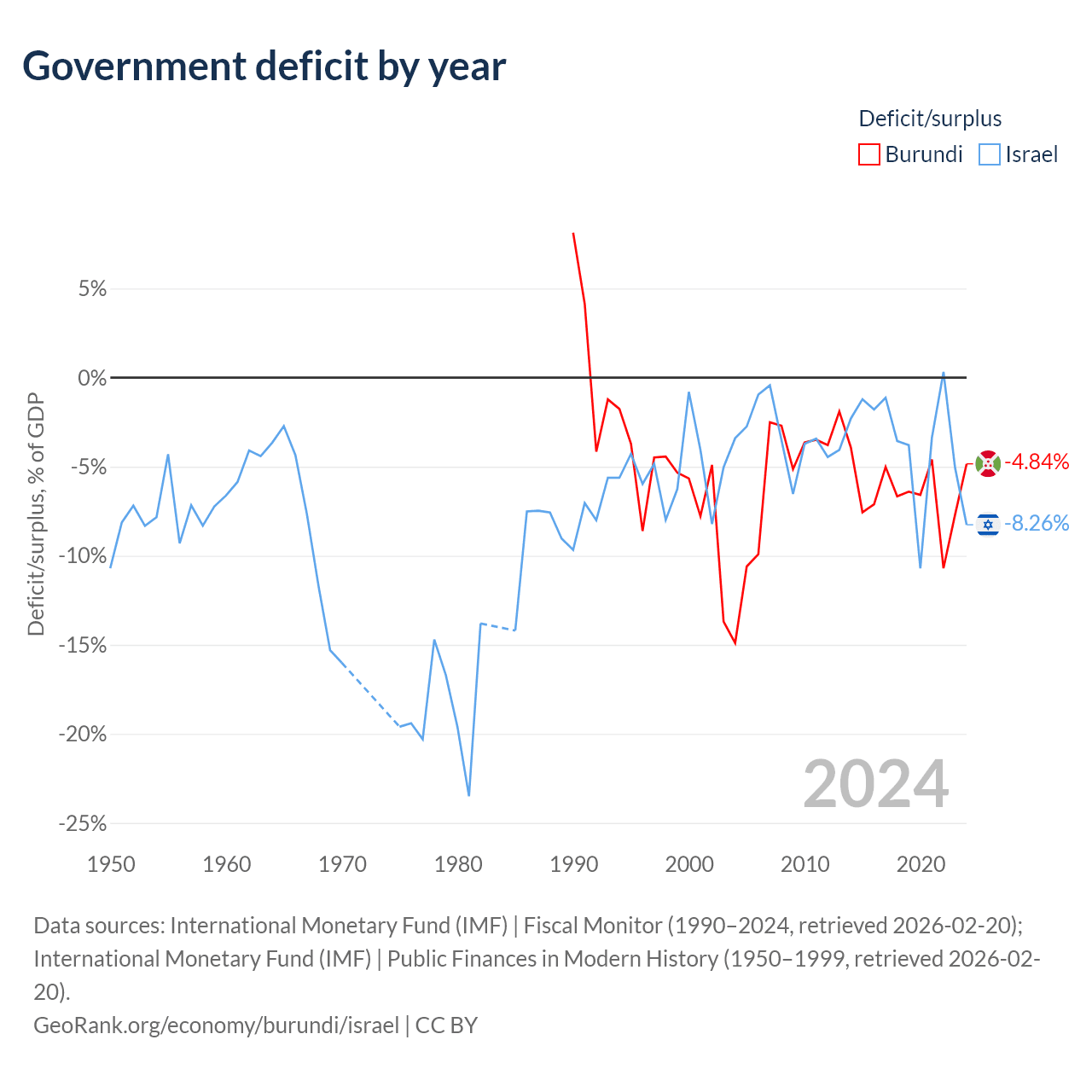 Burundi has $1.6B in government debt (52% of GDP), compared to $366B (67.6% of GDP) in Israel.