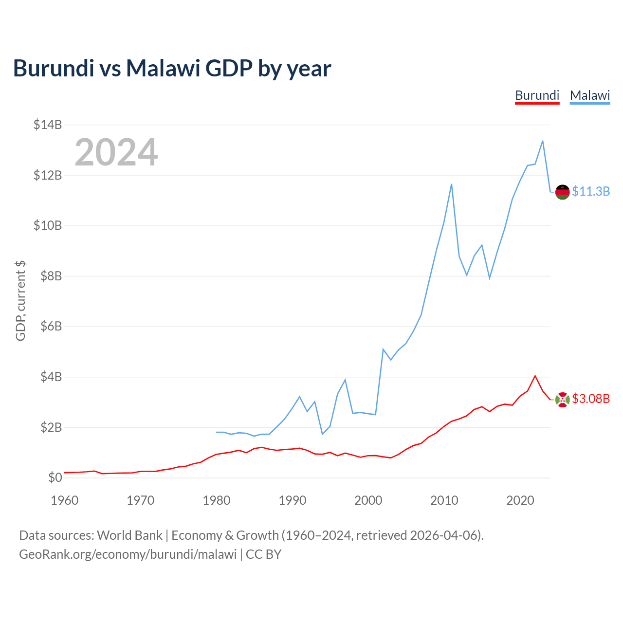 Burundi vs Malawi GDP by year