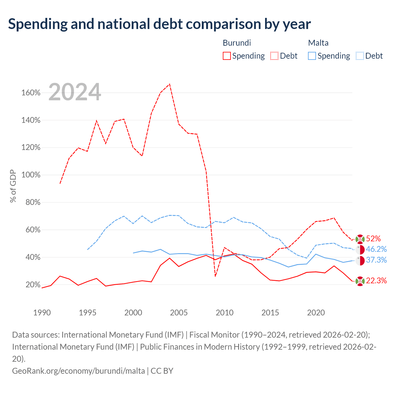 Burundi has $1.6B in government debt (52% of GDP), compared to $11.5B (46.2% of GDP) in Malta.