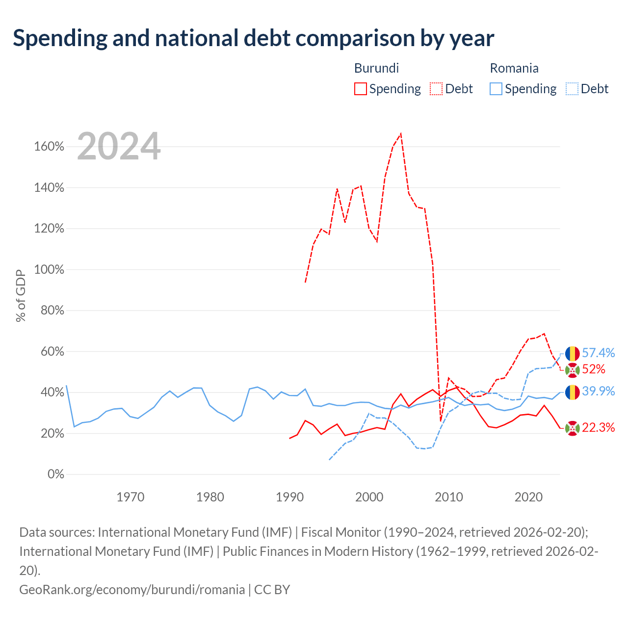 Burundi has $1.6B in government debt (52% of GDP), compared to $220B (57.4% of GDP) in Romania.