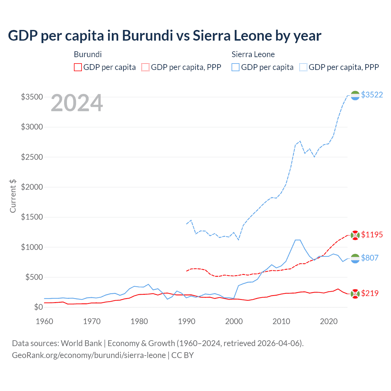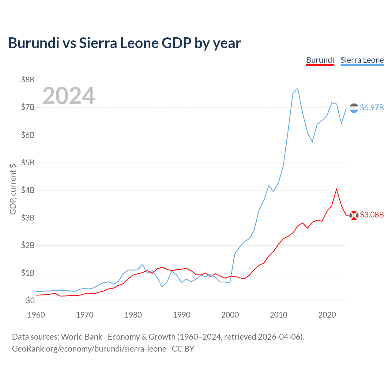 Burundi vs Sierra Leone GDP by year