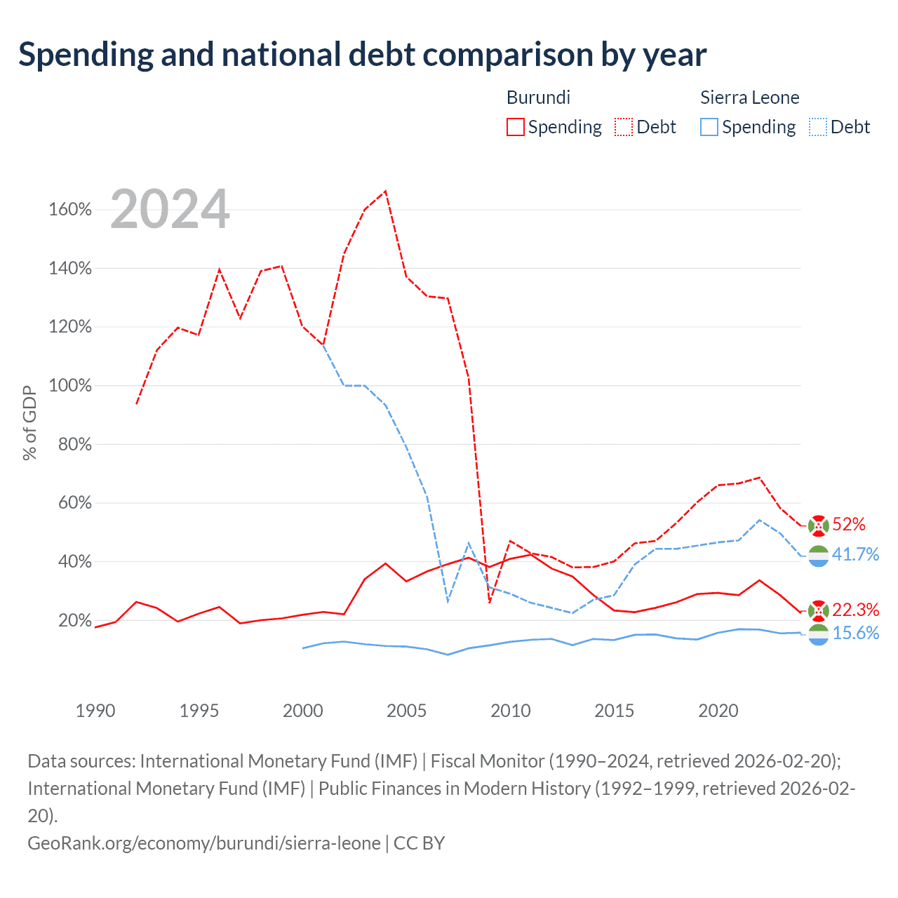 Burundi has $1.6B in government debt (52% of GDP), compared to $2.91B (41.7% of GDP) in Sierra Leone.