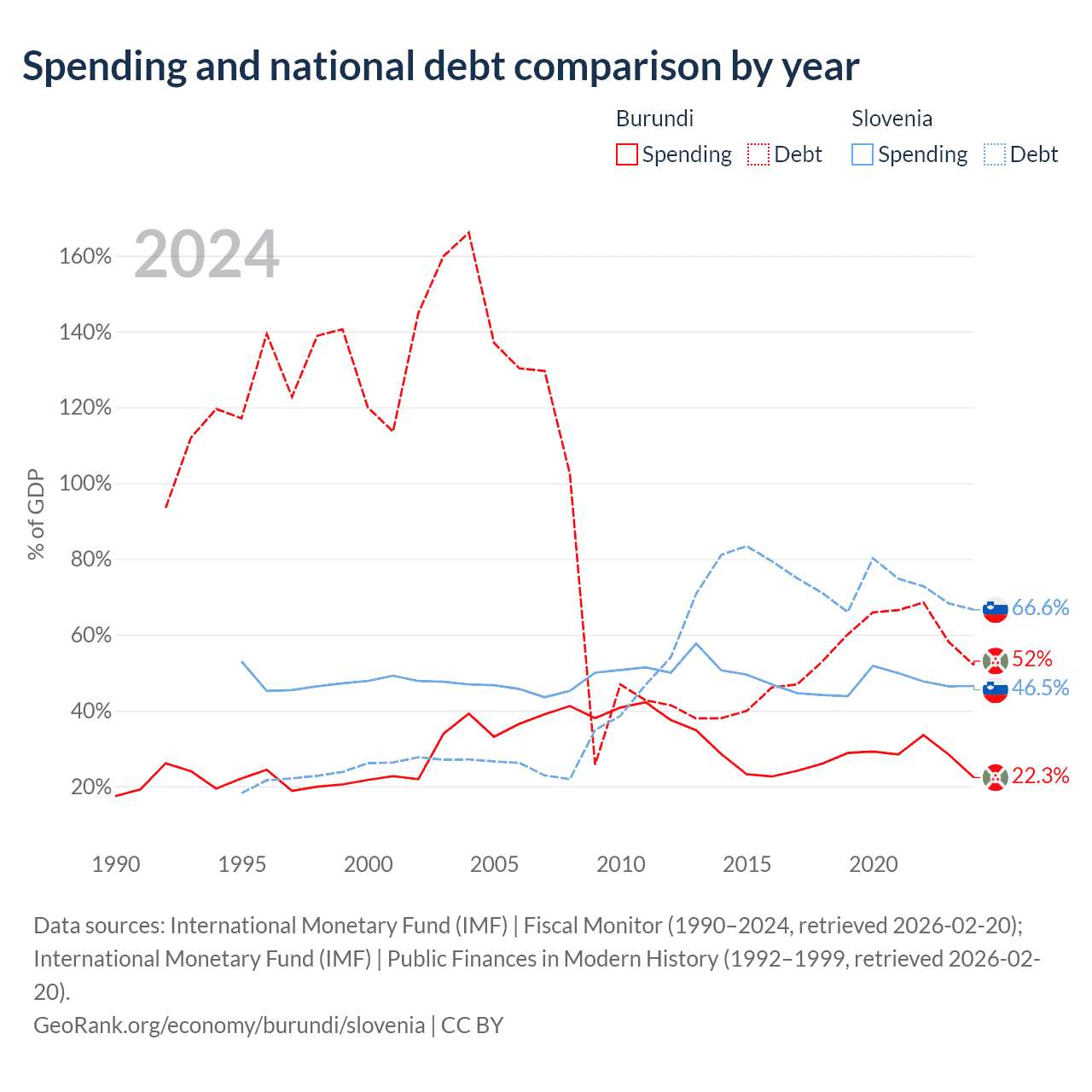 Burundi has $1.6B in government debt (52% of GDP), compared to $48.6B (66.6% of GDP) in Slovenia.
