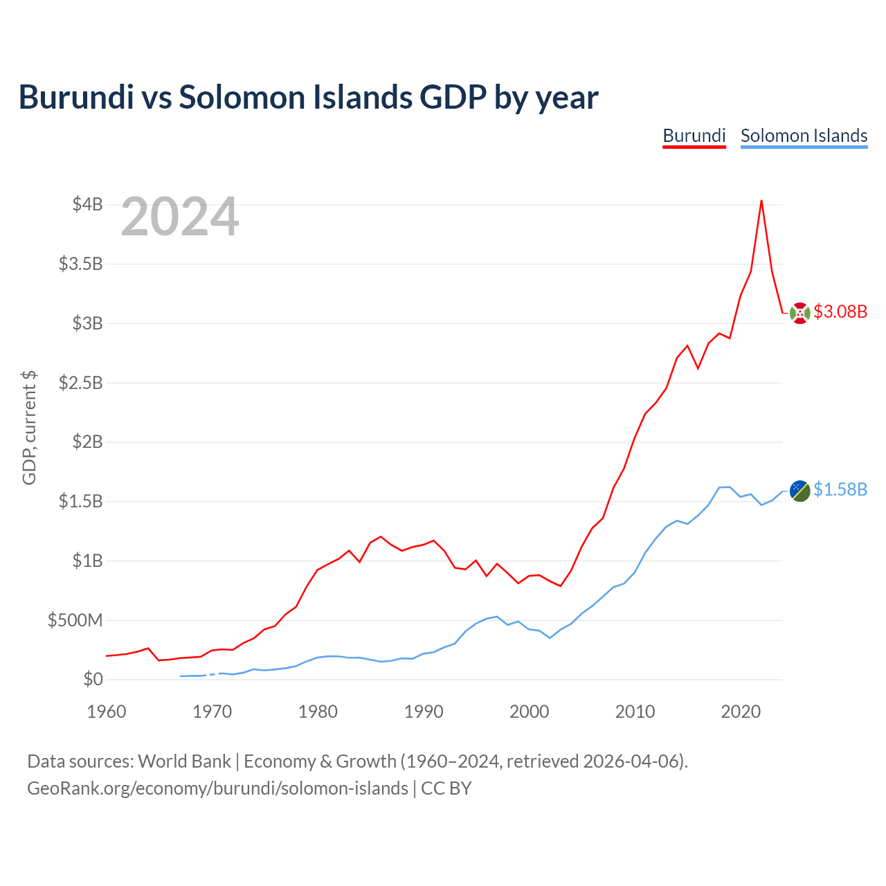 Burundi vs Solomon Islands GDP by year