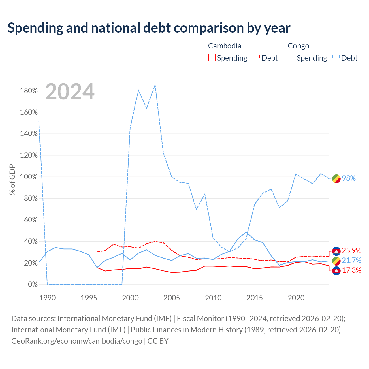 Cambodia has $12B in government debt (25.9% of GDP), compared to $15.4B (98% of GDP) in the Congo.