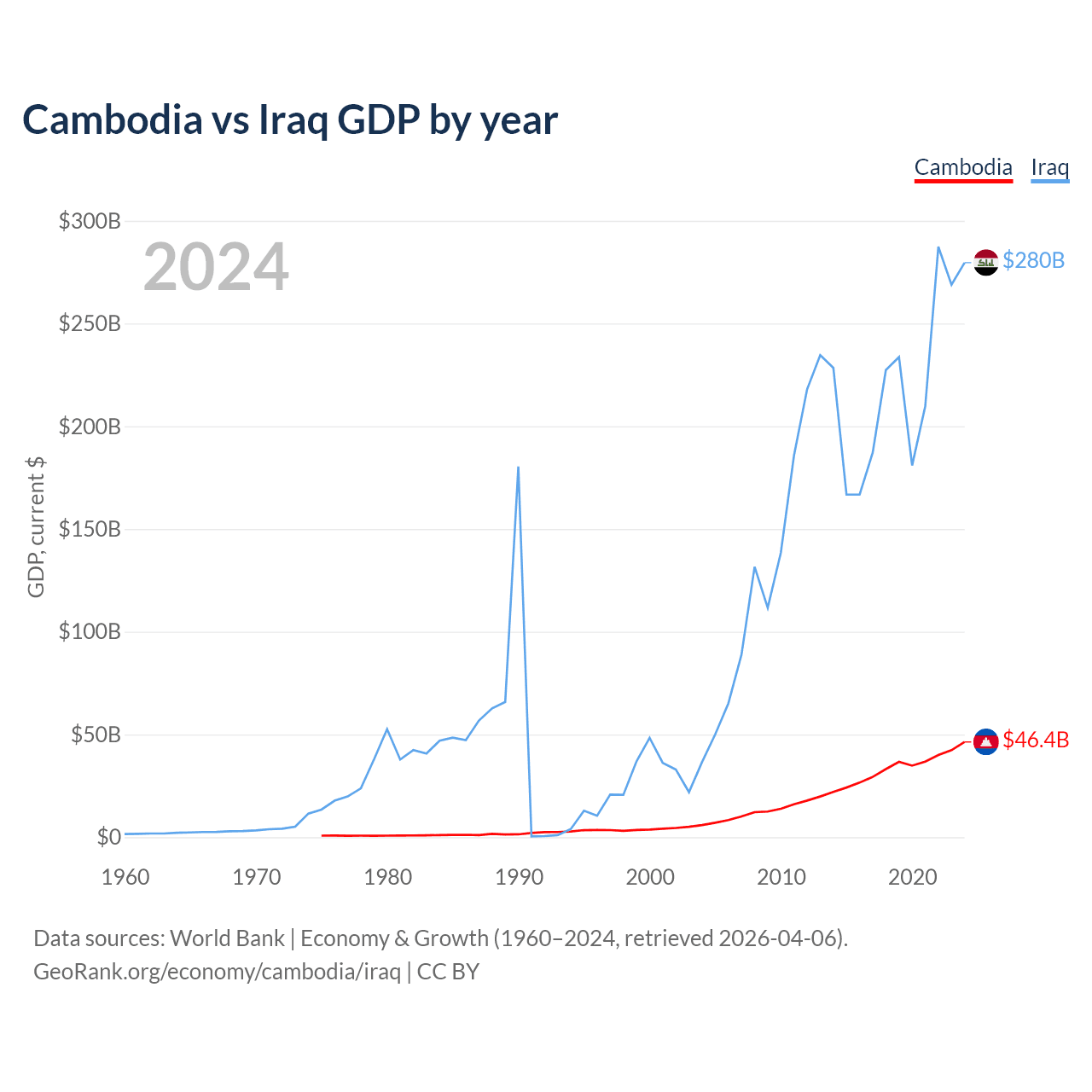 Cambodia vs Iraq GDP by year