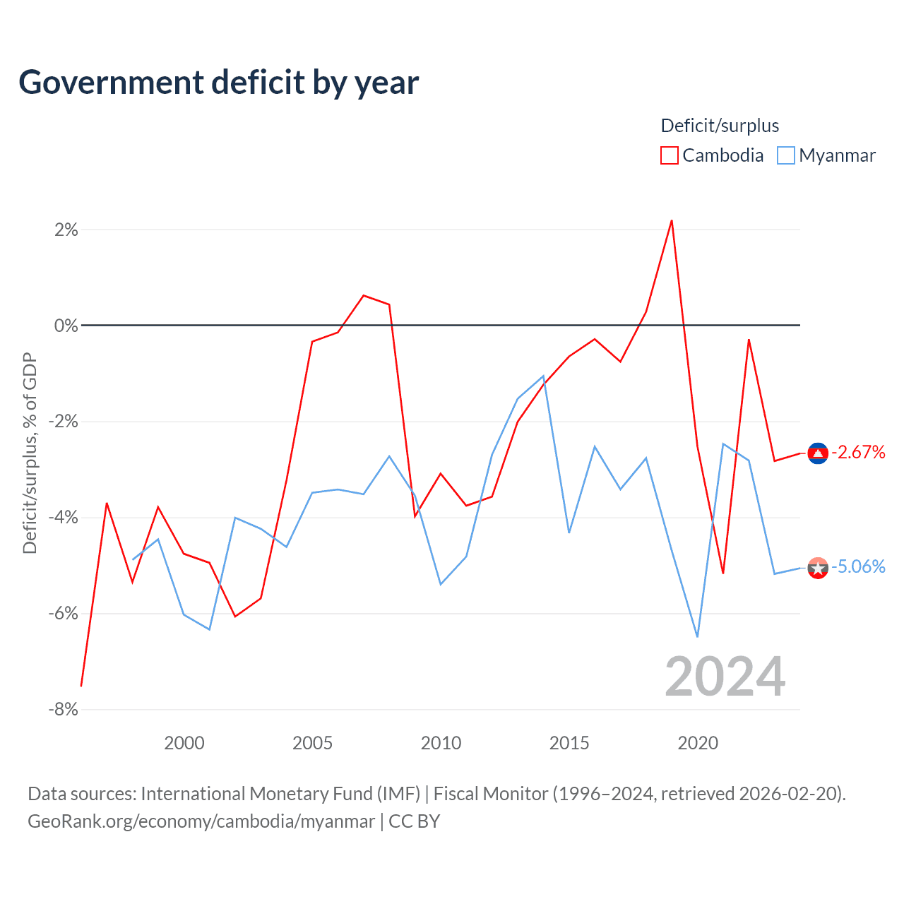 - International Monetary Fund (IMF) | Fiscal Monitor (1996–2024, retrieved 2026-02-20)