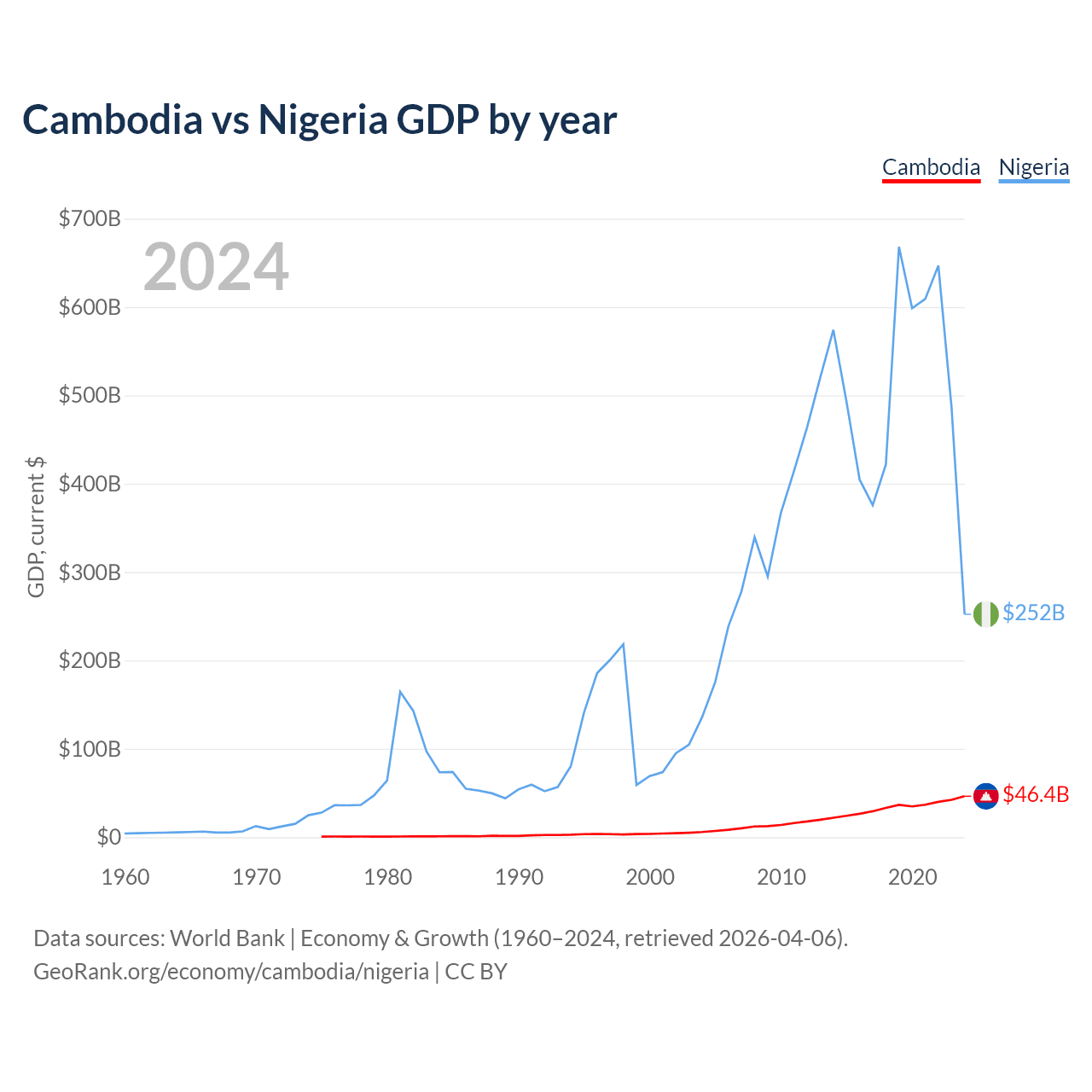 Cambodia vs Nigeria GDP by year