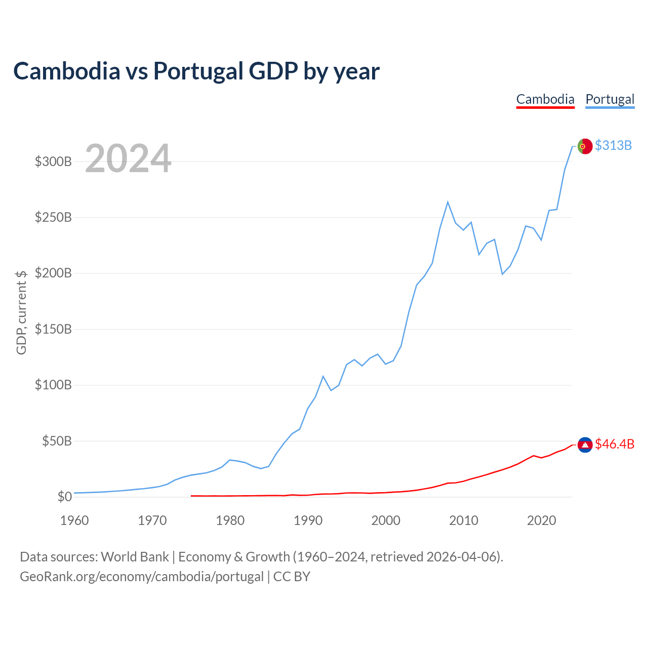 Cambodia vs Portugal GDP by year