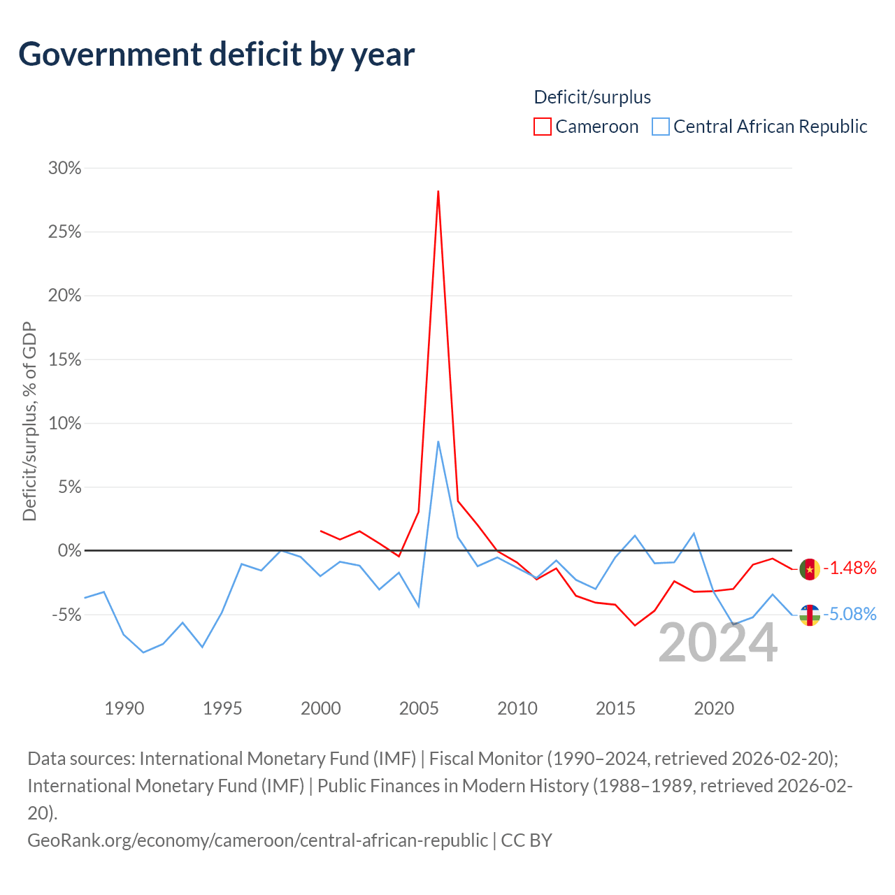 - International Monetary Fund (IMF) | Fiscal Monitor (1990–2024, retrieved 2026-02-20)