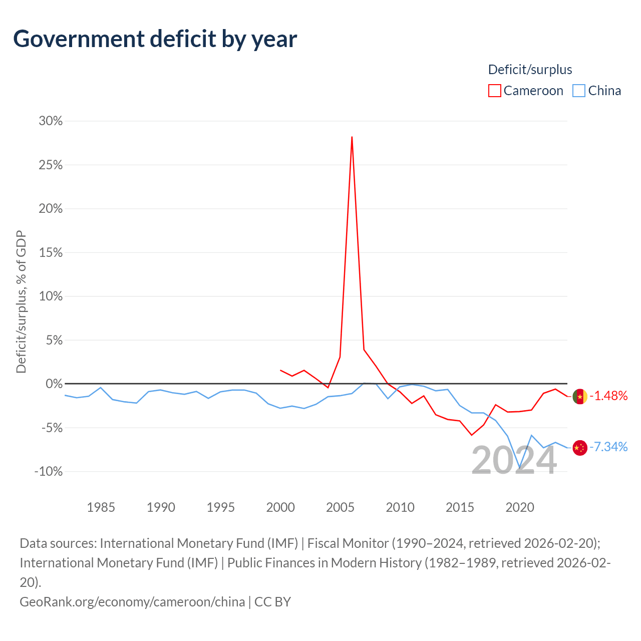- International Monetary Fund (IMF) | Fiscal Monitor (1990–2024, retrieved 2026-02-20)