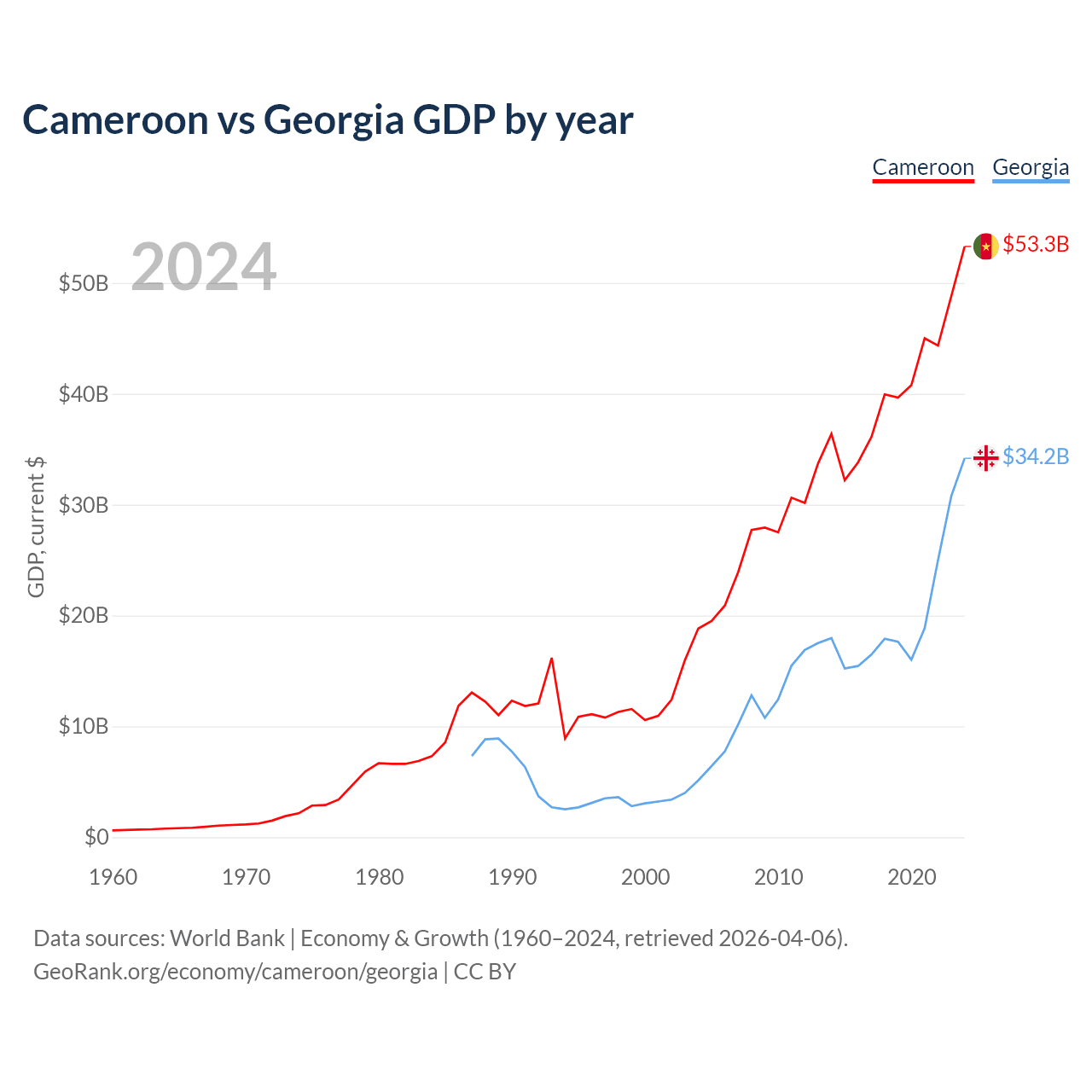 Cameroon vs Georgia GDP by year