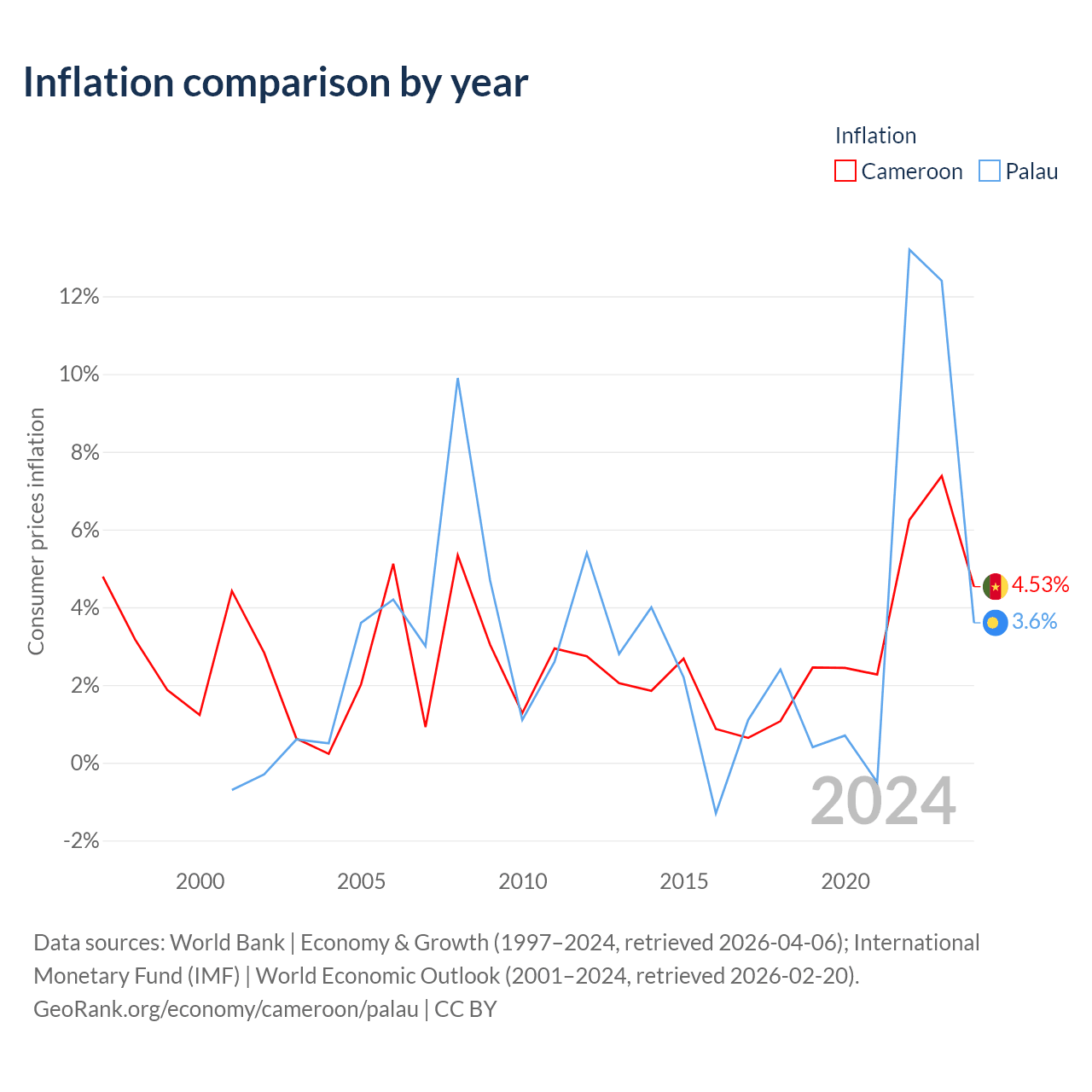 Cameroon vs Palau GDP by year