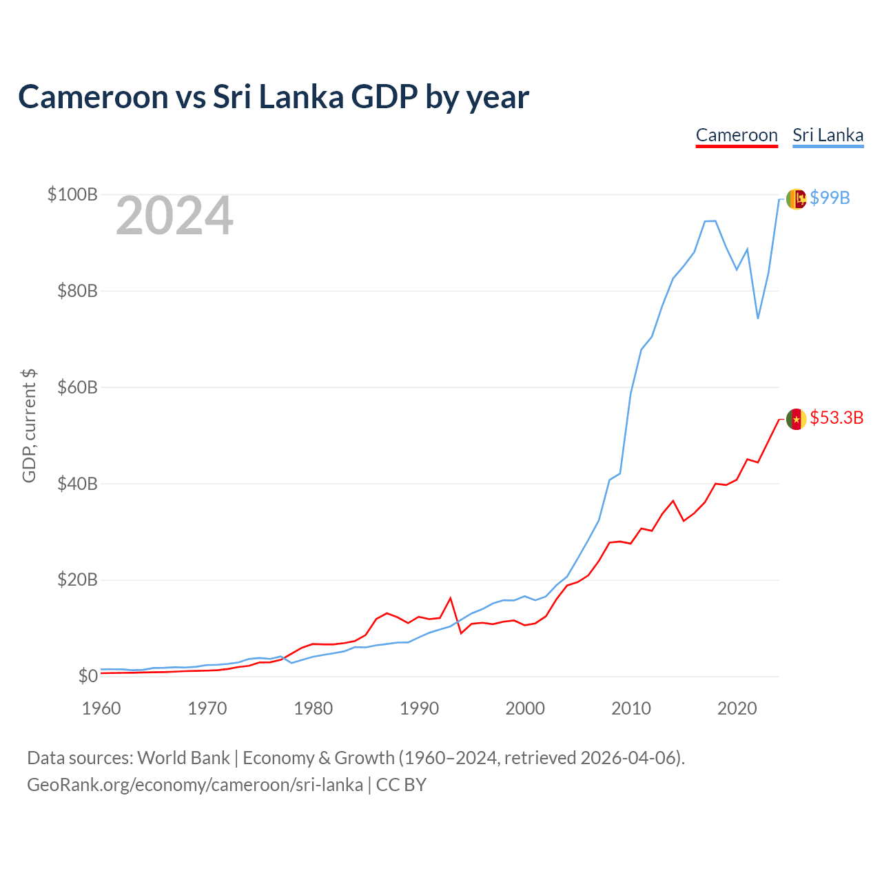 Cameroon vs Sri Lanka GDP by year